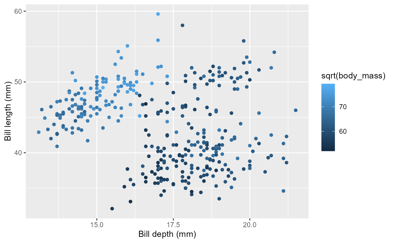 1. Normally, aes() is strictly used to map data instead of setting a fixed property. We diverge from this API for pragmatic reasons, not theoretical ones. ↩︎