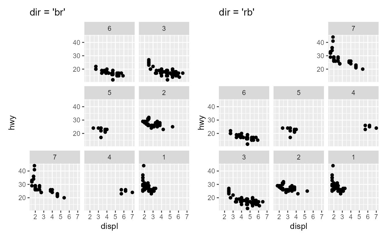 It has been possible to use reverse transformations for scales to flip a plot direction. You could even use scales::transform_compose() to do, for example, a reversed log10 transformation to highlight the smallest p-values. However, the transformation approach has a few limitations, notably that discrete scales do not support transformations and not all coords obeyed transformed scales. You can’t really combine coord_sf() + scale_x_log10() for example. To remedy this limitation, coords now have a reverse argument that can typically be "none", "x", "y" or "xy" that reverse some directions. If you are from the lands down under, you can now plot a map in your native orientation.